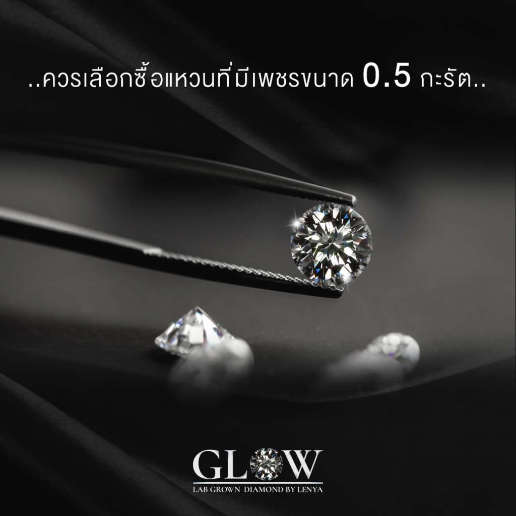 - กรณีเลือกซื้อแหวนเพชร – หากต้องการให้เจ้าสาวสวยแพงอย่างน้อย ๆ ควรเลือกซื้อแหวนที่มีเพชรขนาด 0.5 กะรัต เพื่อความแวววาวรวมถึงความใหญ่ของตัวเพชรจะยิ่งทำให้คนในทุกงานทุกคนสะดุดตาจนแทบไม่ละสายตากันเลย